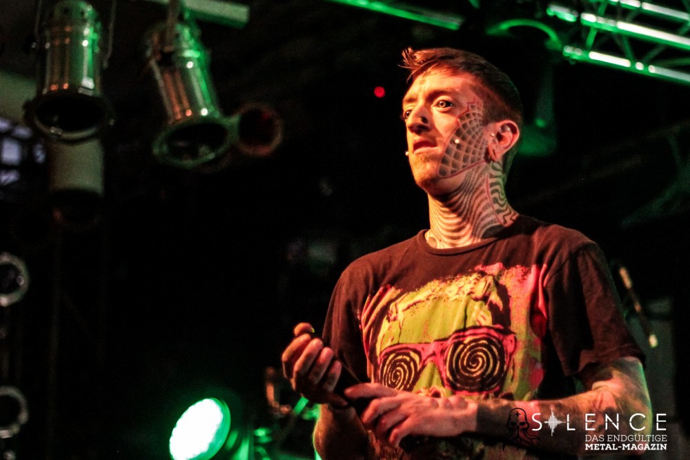 Die zweite Band auf der Hauptbühne ist PROMETHEE. Mittlerweile haben sich deutlich mehr Leute in der Halle eingefunden. Zu Recht, wie ich in den nächsten Minuten bemerke. Das Quintett aus der Schweiz liefert gut gemachten, finsteren Deathcore ab, der mit einigen elektronischen Elementen und dröhnenden Bassdrops garniert wird. Die Lichtshow ist unfassbar intensiv und abwechslungsreich, aber auch darüber hinaus bleibt mir der Auftritt durch mehrere Faktoren in positiver Erinnerung. Zum einen bewegt sich Sänger Joshua Orsi unfassbar agil auf der Bühne, zum anderen ist er ein absolutes Stimmungetüm, das heute eine hervorragende Leistung liefert. Ein sehr starker Gig, der die Latte für den Rest des Festivals in mehrerlei Hinsicht erstmal einige Stufen höher legt.