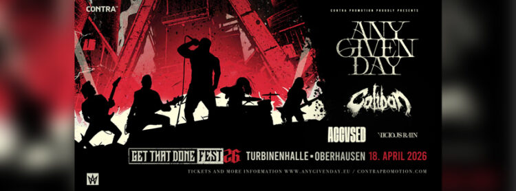 Ich weiß ja nicht, wie’s euch geht, aber wenn man an einen Abend denkt, an dem Macher-Mentalität, echte People und fette Riffs aufeinandertreffen, dann denkt man automatisch an Get That Done. Und diesmal kommen ANY GIVEN DAY nicht nur zum Feiern – sie haben sich ’ne fette Crew an die Seite geholt, die live ordentlich was losmacht: CALIBAN, Vicious RAIN & ACCVSED stehen am Start, um mit euch die Turbinenhalle 2 aufzumischen.