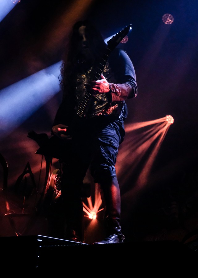 Pünktlich um kurz vor 19 Uhr gehen die Lichter aus. Auch an der Kamera. Wie immer, kein Blitz. ROTTING CHRIST eröffnen den Abend und kuscheln sich auf den vorderen Metern der vollgestellten Bühne. Die Band zeigt sich selbstbewusst und gut in Form. Das Publikum lässt sich bereits zu einem Moshpit überreden und singt dankbar mit aufgesetzt ernster Miene mit. Leider ist der Gig viel zu schnell herum. Der Sänger verdient wirklich mehr Aufmerksamkeit.